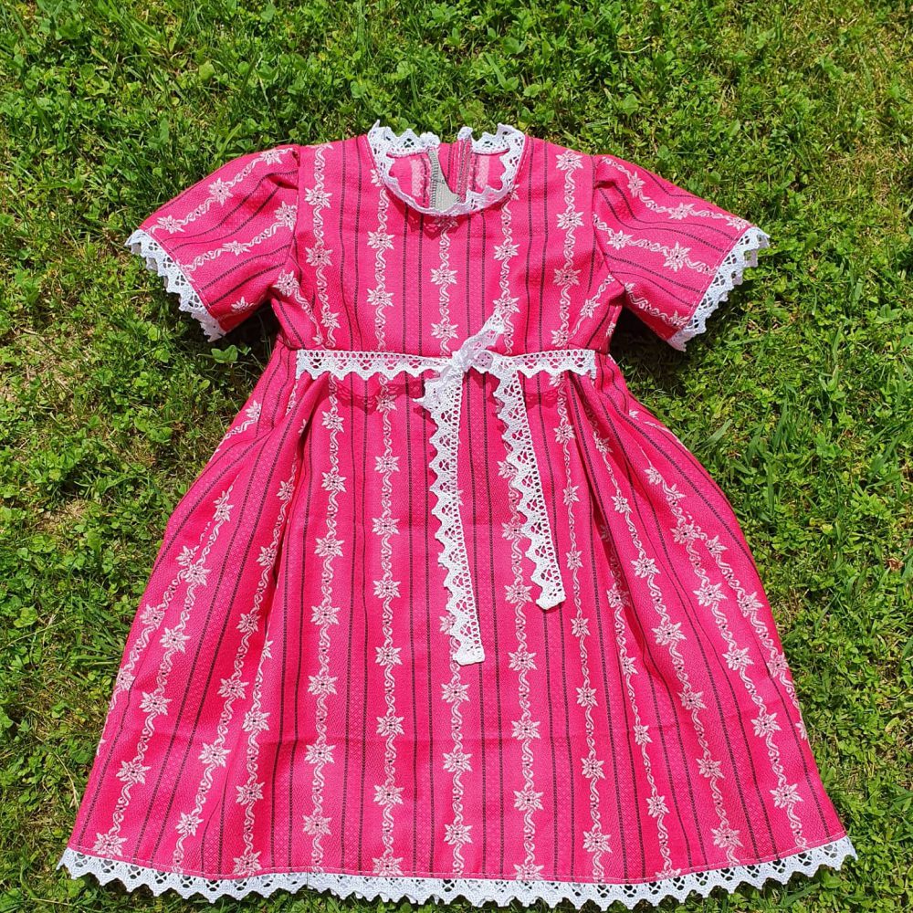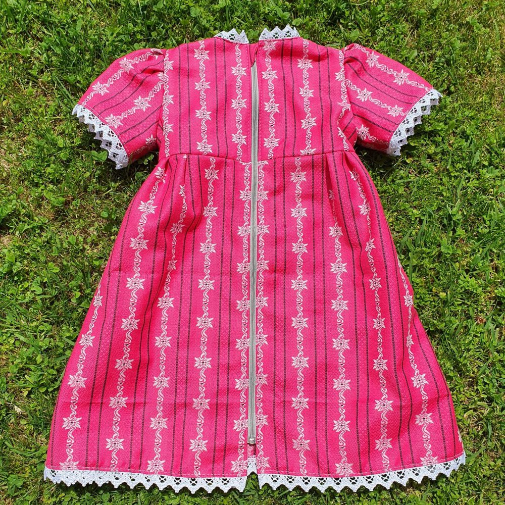 Süsses, bequemes und praktisches Sommerkleid aus dem Orginal Edeweissstoff. Das Kleid hat einen Rundhalsausschnitt, Pufferärmel, Spitzen am Saum und einen Reissverschluss. Daher ist das Kleid ganz einfach zum an- und ausziehen.