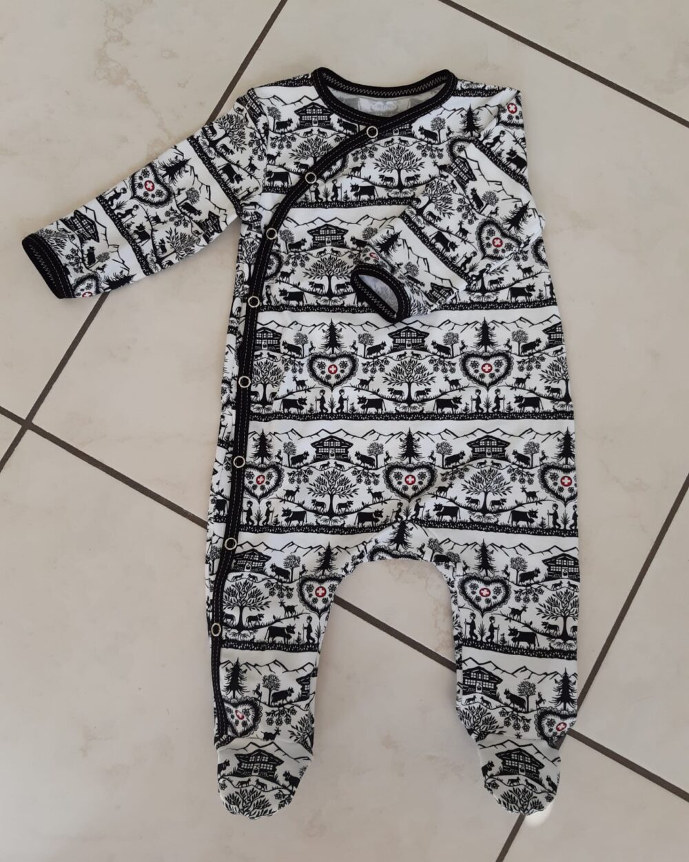 Strampler Scherenschnitt: ein tolles Geschenk für ein Neugeborenes. Genäht aus dem in der Schweiz hergestellten Scherenschnitt-Stoff. Die Druckknöpfe werden von Hand mit einer Presszange befestigt.